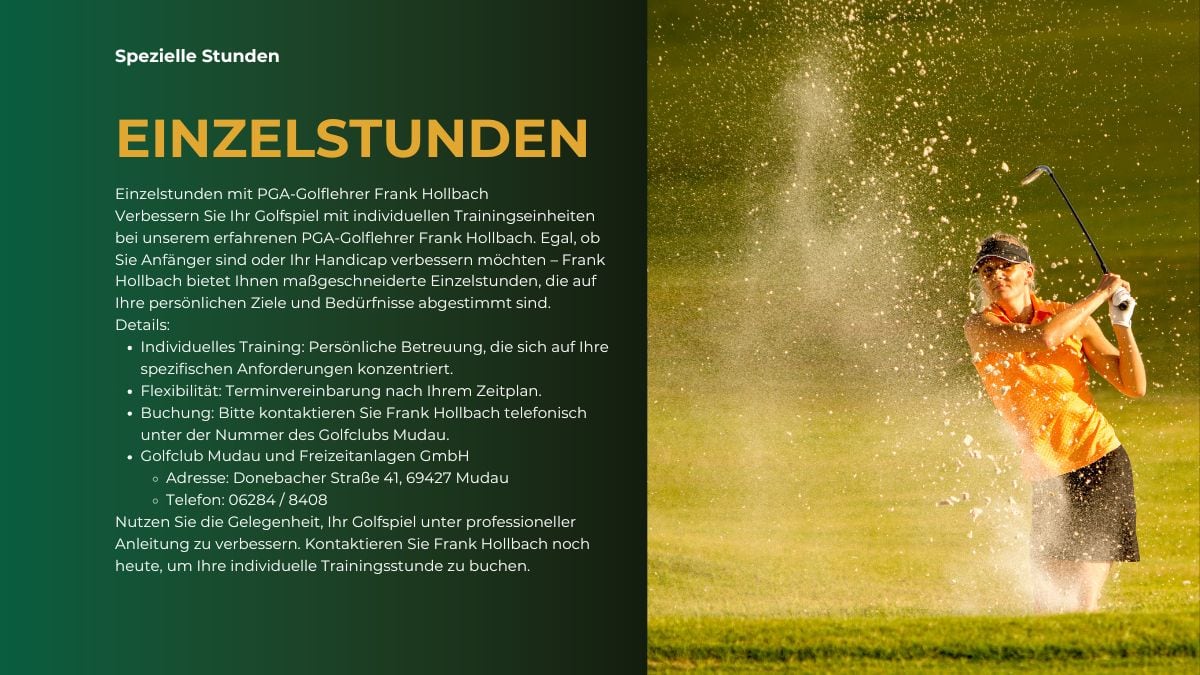 Verbessere dein Spiel mit speziellen Golfstunden in Mudau: Langes Spiel, kurzes Spiel, Bunkerspiel – gezieltes Training für alle Bereiche deines Spiels!